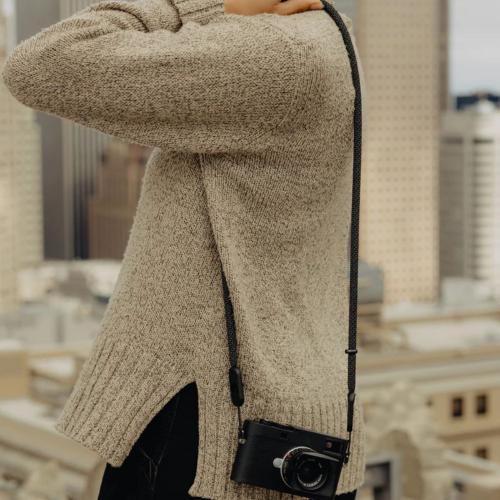 Em vez de corda de escalada abrasiva cosida a anéis metálicos volumosos, concebemos internamente os nossos próprios materiais e componentes para criar uma forma simplificada, com uma experiência de ligação excepcional. A corda em nylon/poliéster, tecida em padrão basket-weave e desenvolvida internamente, oferece o equilíbrio ideal entre resistência, amortecimento e elasticidade, garantindo um transporte confortável da câmara.
