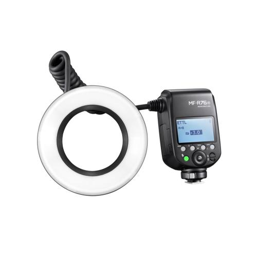 Desfrute de iluminação macro deslumbrante O TTL R76 oferece a conveniência de capturar fotos em close-up impressionantes. Com uma interface intuitiva, TTL que melhora a eficiência e sincronização super-rápida para grandes aberturas, pode explorar o mundo do macro à vontade. Fotografias incríveis com sincronização Altas velocidades de sincronização permitem capturas perfeitas com grandes aberturas. As opções de sincronização de cortina frontal e traseira expandem as possibilidades criativas. Wireless 2.4G A função sem fios 2.4G permite trabalhar em conjunto com luzes do sistema Godox Wireless X 2.4G, possibilitando a criação de vários esquemas de iluminação com diferentes efeitos. Luz sem sombras Como flash circular no mesmo eixo ótico da lente, o TTL R76 proporciona uma luz sem sombras que capta todos os detalhes e ilumina o sujeito de forma uniforme. Luz de assistência ao foco Duas luzes de assistência ao foco com 10 níveis de potência garantem eficiência ideal em ambientes com pouca luz, facilitando o foco. Longa duração da bateria A bateria de longa duração do TTL R76 oferece flexibilidade para capturar a magia do mundo macro sem preocupações de perder momentos cruciais.