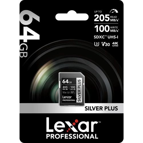 • Lexar SILVER PLUS SDXC 64GB 205MB/s V30