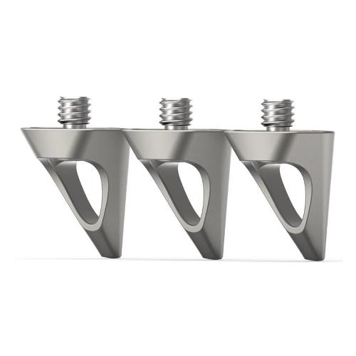 A instalação é simples: basta remover os pés de borracha padrão do Tripé e substituir por estes 3 pés com pontas metálicas. A fixação é feita através de 3 parafusos com cabeça hexagonal (chave incluída).